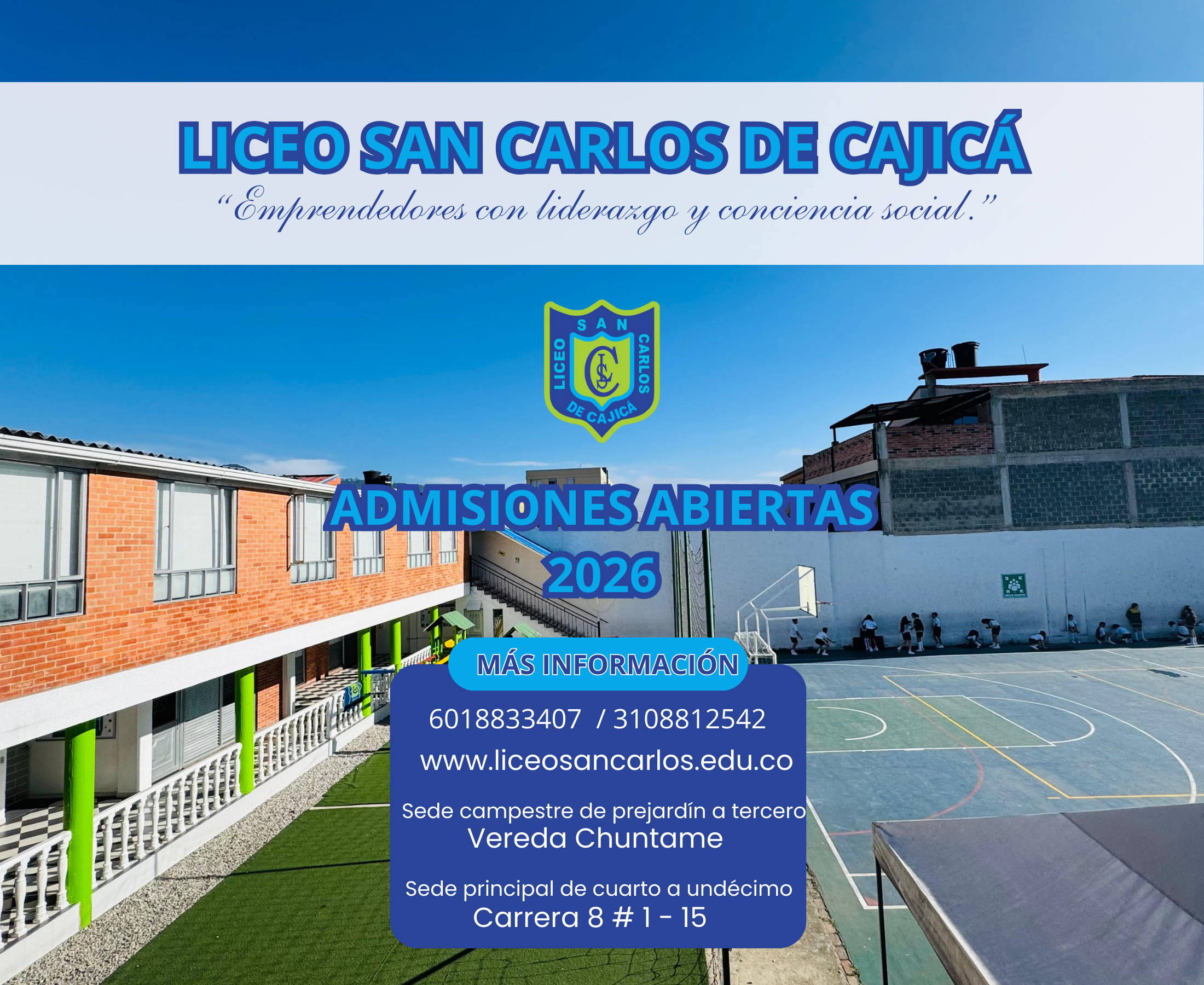El LICEO SAN CARLOS de Cajicá, es una institución educativa con fundamento católico, preocupada por educar personas emprendedoras y con conciencia social para incentivar la creación de microempresas a partir de la comprensión del valor social de las normas, buscando que sus estudiantes enfrenten con inteligencia los retos del cambio y todo ello con base en la aplicación de la pedagogía social cognitiva. El Liceo San Carlos de Cajicá educa a niñas, niños y jóvenes integrando valores como: Autonomía: capacidad de cada persona para gobernarse a sí misma, teniendo en cuenta su bienestar y el de quienes le rodean, con libertad para expresar sus sentimientos e ideales en aras del desarrollo integral. Responsabilidad: en la formación de valores humanos y sociales que le permiten al educando asumir y reconocer sus deberes y derechos, en tanto cumple con sus compromisos mientras conserva un comportamiento adecuado dentro y fuera de la institución. Honestidad: Convicción de estudiantes y educadores para actuar de buena fe en el desarrollo de sus actividades, teniendo sentido moral de la consecuencia de sus actos y tomando decisiones que le permitan ser sincero consigo mismo y con su comunidad. Tolerancia: entendida como el arte de preservar la diferencia entre personas para construir a partir de la diversidad.